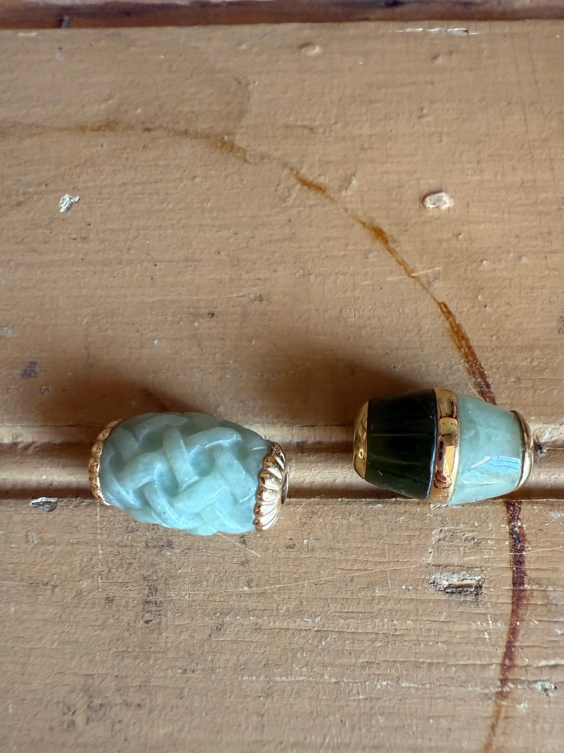 2) 14K capped oval nephrite and jade pendant-5/8" length x 7/16" width, 2.9 grams, 4.80 mm opening