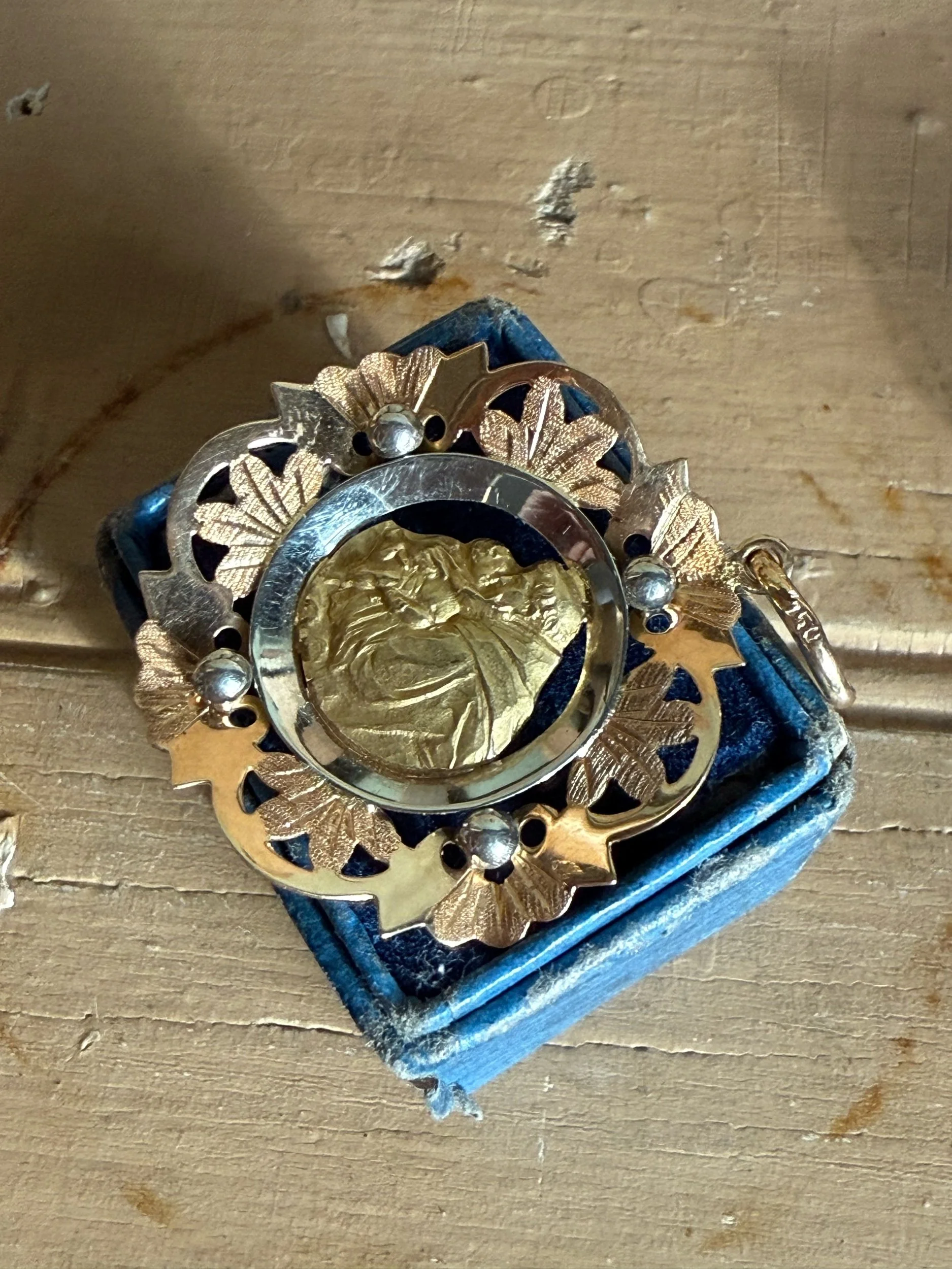 Categories: All Loose Gemstones Bags Coin Bracelets Brooches Charms/Fobs Earrings Necklaces Rings Pendants/Lockets Sterling Watches Other All / Vintage 14K Yellow Gold Folding Glasses Lorgnette Engraved Joy $1,850.00 c1880 Antique Victorian Carved Banded Agate Cameo Locket on Chain $335.00 A 1996 Canada 1/10 oz Gold Maple Leaf Five Dollar Coin in Decorative Frame Pendant $780.00 Antique Gold Filled Magnifying Eye Glass Collaspable Pendant $125.00 14K Yellow Gold Oval Sapphire and Diamond Vintage Pendant $695.00 A Vintage Sterling Silver Double Frame Floral and Scroll Engraved Front and Decorative Bale $148.00 Vintage 18K Tri-Color Gold Saint Anthony of Padua Holding Baby Jesus Pendant $850.00 14k Yellow Gold Vintage Oval Jade Pendant you can add to Chains or Pearls $595.00 Vintage Tahitian Pearl Pendant in 14K Yellow Gold $395.00 1890's Eygptian Revival Antique Victorian Foil Mosaic Scarab Pendant $895.00 Vintage Fierce Sterling Silver Roaring Lion Large Bold Pendant $98.00 A Vintage 14K Yellow and White Gold Ruby and Diamond Open Heart Pendant $295.00 Antique Louis Kuppenheim 900 Silver Cat Compact with Gemstone Collar $2,200.00 Pick a 14K Yellow Gold Vintage Charm-Hearts, Butterfly, Angel and Shamrock from $80.00 1 Gram 999.9 Gold Credit Suisse Bar Set in a 14K Yellow Gold Diamond Framed Pendant $385.00 Pick a Custom Vintage 10K Stickpin Top Converted to a Unique Charm or Pendant $158.00 c1900 Silver Edwardian Turquoise and Pearl Flower Pendant $128.00 c1980 14K Pear Shape Opal Heart Pendant (Chains available-just ask) $68.00 c1810 Georgian Silver Vinaigrette by John Thornton Birmingham Gilt Interior $345.00 c1910 Art Nouveau 14K Yellow Gold Rose Cut Aquamarine and Dog Tooth Pearl Pendant $595.00 1900 Birmingham Large Hand Engraved Medallion Full Hallmarks $145.00 Sterling Silver Beautiful Pierced Design Large Cross Pendant $55.00 c1930 Huge Round Locket with Enamel and Czechoslovakian Stones Possibly Neiger Brothers $225.00 SALE Late Victorian Early Edwardian Round Gold Filled Double Frame Dragon Soldier Locket $225.00 1940-1950 Gold Filled Large Engraved Heart Locket $90.00 10K Yellow Gold Antique Art Nouveau Floral Diamond Round Locket $800.00 c1880 Victorian Hand Carved Coral Cameo Dangle 14K Pendant $695.00 Antique 14K Yellow Gold Onyx Rose Cut Diamond Pansy Pendant $695.00 An Fine Edwardian 14K Yellow Gold Engine Turned Locket with Sapphire Cabochon Push Clasp $2,200.00 Vintage 1930-1950's Spun 14K Yellow Gold Hand Made Pendant Featuring a Shell Cameo and Pearls $1,680.00 Antique Art Nouveau Arts and Crafts Blister Pearl In Sterling Silver Pendant with Engraving $125.00 c1870 Victorian 14K Yellow Gold Turquoise and White Enamel Dangle Pendant $1,200.00 Antique Kerr Angel Cupid Pendant with Simulant Ruby $250.00 Vintage 14K Gold Filled Heart Locket with Rose Gold flower $32.00 S.K. Merrill Co. Edwardian Massive Locket with Paste $220.00